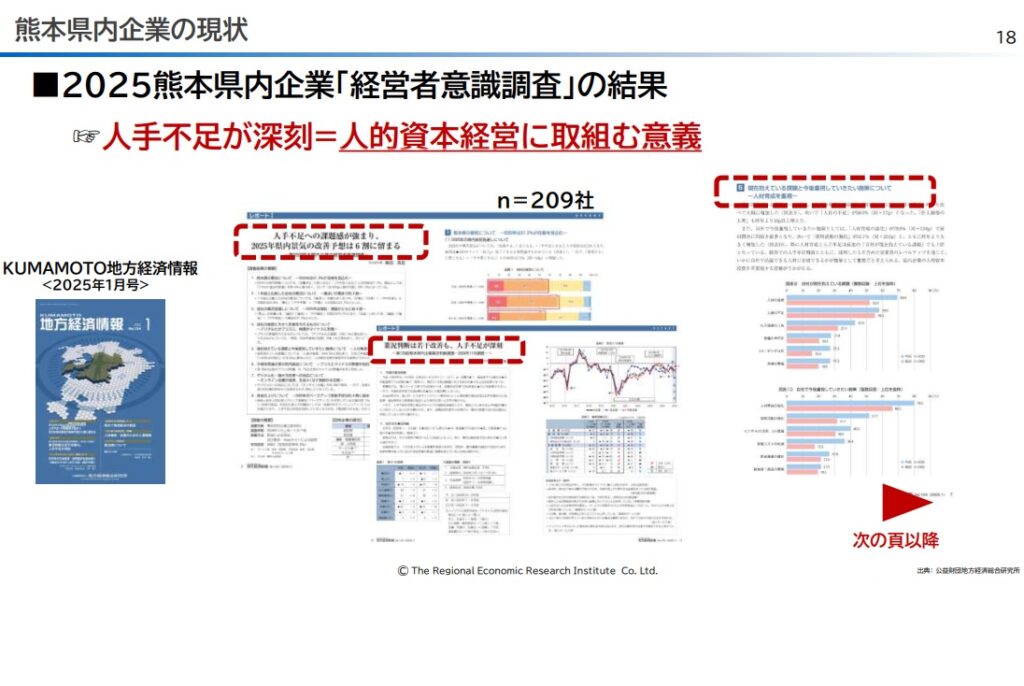 講演では熊本県内企業における人的資本経営の現状と課題、そして実践に向けたステップについて事例を交えながらお話ししました。